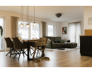 modernes und sehr exklusiv ausgestattete OG-Wohnung in modernem 6 Parteienhaus mit extragroßem, uneinsehbarem und überdachtem Süd-Balkon.