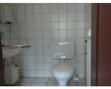 - Erdgeschoss: Gäste-WC, 1 großer Büroraum, alles weiß gefliest