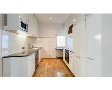 Die nebenan gelegene Einbauküche mit hochwertigen AEG-Elektrogeräten kann optional mit übernommen werden. Schlafraum, Essbereich und ein modernes Duschbad mit Fenster komplettieren die Wohnebene.
