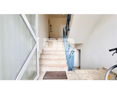 Vom zentralen überdachten Eingang gelangen Sie in den hellen Flur mit Treppenhaus, in dem ein wertiger Travertinboden verlegt ist.