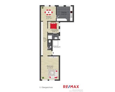 Die 3-R-Wohnung im 5.Obergeschoss ist wie folgt aufgeteilt: