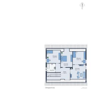 Im Obergeschoss bieten sich vielseitige Gestaltungsmöglichkeiten für Schlaf- oder Arbeitsräume, Rückzugsorte und kreative Ideen. Die solide Bauweise und der klassische Grundriss schaffen eine ideale Grundlage, um individuelle Wohnträume Wirklichkeit werden zu lassen.