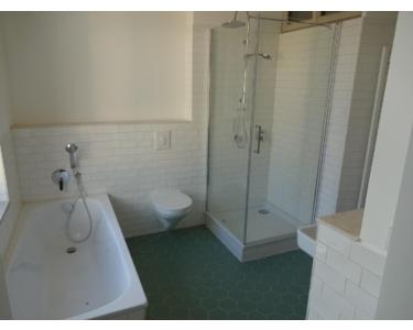 Gehobene Qualität: Hochwertiges Bad mit Badewanne und zusätzlicher Duschkabine plus separates Gäste-WC.