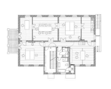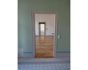 Die gesamte Etage im 1. Obergeschoss, umfassend ca. 173,80 m² , wurde 2021 umfassend und hochwertig kernsaniert. Hier verbindet sich der unvergleichliche Charme des Altbaus mit dem Komfort einer neuwertigen und technologisch fortschrittlichen Ausstattung. Großzügige, lichtdurchflutete Räume inszeniert durch historische Flügeltüren und edle Schlossdielen. Dies schafft ein Ambiente, das Kunden und Mitarbeiter gleichermaßen inspiriert. Trotz des historischen Flairs ist die Einheit modern vernetzt. Die komplette Cat 7 DV-Verkabelung und moderne Schallschutzfenster garantieren effizientes Arbeiten in Ruhe. Ein hochwertiges Wannenbad mit zusätzlicher Dusche und ein separates Gäste-WC runden das Bild der gehobenen Ausstattung ab. Ein privater Süd-Balkon lädt zum Verweilen ein.