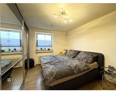 Das Schlafzimmer ist ebenfalls lichtdurchflutet und bietet ausreichend Platz für individuelle Gestaltung. Ein großes Fenster sorgt auch hier für Helligkeit und eine angenehme Atmosphäre.