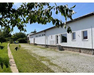 Dieses Objekt beteht aus einem Alt- und einem Neubau. Der Altbau wurde 1953 von einer Bäuerlichen Handelsgenossenschaft errichtet und bestand vor allem aus einem Futtermittel-Lager (258 m²), einem Düngemittel-Lager (154 m²) sowie Büro- und Sozialräumen (ca. 100 m²). Irgendwann erhielt es auf Süd einen einfachen Lageranbau (ca. 50 m²). Nach der politischen Wende stand das Objekt lange leer, 2005 bis 2010 wurde es von besagtem Unternehmer umfassend saniert und erhielt einen zweigeschossigen Westanbau. 2020 wurde der Standort aufgegeben. Zurück blieb ein modern ausgestattetes Produktions- und Lagergebäude mit Büros im Obergeschoss und wartet - auf Sie.