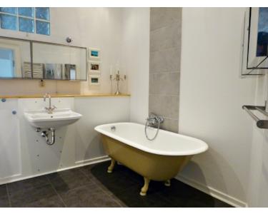 Der nach Süd-Westen ausgerichtete Wohn- und Essbereich ist durch einen imposanten Türbogen voneinander getrennt und wird durch große Fensterflächen mit viel Tageslicht versorgt. Das großzügige Badezimmer verfügt über eine freistehende Badewanne und eine extra große Dusche. Das separate WC befindet sich gleich nebenan.
