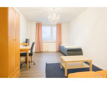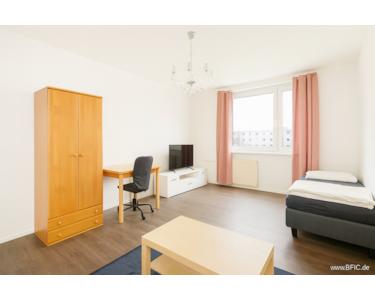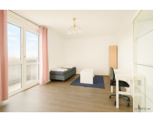 The apartment on offer is located on the seventh floor of a well-kept residential building in Berlin's Sewan district and is fully furnished. It was specially designed for use as a shared apartment and offers a total of three private rooms, each of which is individually furnished and thus creates pleasant retreats for each resident. The kitchen, bathroom and glazed loggia form the communal areas. The apartment has laminate flooring, a fully fitted kitchen with all major appliances and a renovated bathroom with bathtub. The glazed loggia extends the living space and offers a sheltered, bright lounge area that is ideal for relaxing or sitting together. The house is equipped with an elevator, making it easy to reach the upper floor.