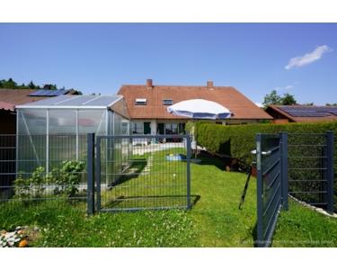 Die interessante neue Gartengestaltung mit Sonnenterrasse, Gewächshaus und einem Gartenhaus und ein schöner Westbalkon laden Sie zum Entspannen und Verweilen ein.