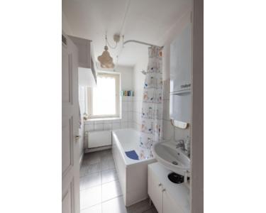Die Altbauwohnung wurde in den letzten Jahren renoviert und 2019 eine Einbauküche neu verbaut. Das Bad ist gefliest und es gibt eine Duschbadewanne. Die anderen Bodenbeläge der hellen Wohnung sind mit PVC oder Laminat belegt.