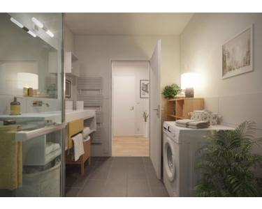 - hochwertige Sanitärausstattung und Fliesen