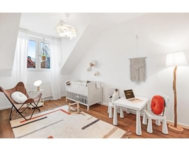 Diese modernisierte Wohnung aus dem Jahr 2001 bietet auf ca. 97 qm eine hervorragende Wohnqualität. Im 1. Obergeschoss erwarten Sie insgesamt drei Zimmer, darunter zwei helle Schlafzimmer, die auch ideal als Arbeitszimmer oder Gästezimmer genutzt werden können. Das Badezimmer ist mit einer Dusche und einer Badewanne ausgestattet und bietet zudem einen Anschluss für Waschmaschine und Trockner. Der großzügige Wohn- und Essbereich lädt zum Verweilen ein, während der angrenzende Kochbereich mit einem separaten Abstellraum/Speisekammer zusätzlichen Stauraum bietet.