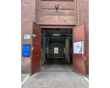 Die Fläche verfügt über eine große Einfahrt mit Doppeltür, ideal auch für Anlieferungen. Das Tor liegt ebenerdig, die Deckenhöhe beträgt rund 4,90 Meter. Die Zufahrt wird gemeinschaftlich genutzt. Die Einheit kann flexibel geteilt werden, eine Anmietung ist ab 60 Quadratmetern möglich.