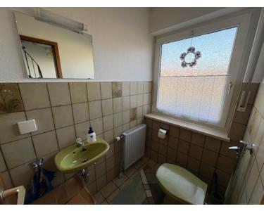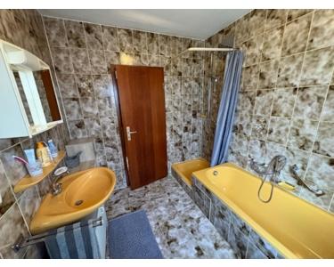 Die Küche ist funktional gestaltet und grenzt direkt an das Esszimmer, was kurze Wege garantiert. Das Badezimmer ist mit einer Badewanne ausgestattet und bietet genügend Platz. Zusätzlich gibt es ein praktisches Gäste-WC.