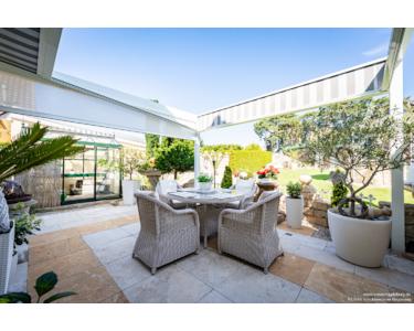 - große geflieste Terrasse mit flexibel überdachter Markise,