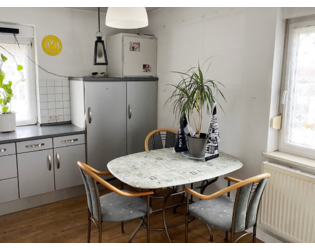 - Einbauküche mit Großgeräten (Backofentür defekt) sowie Waschmaschinenanschluss incl. der Waschmaschine