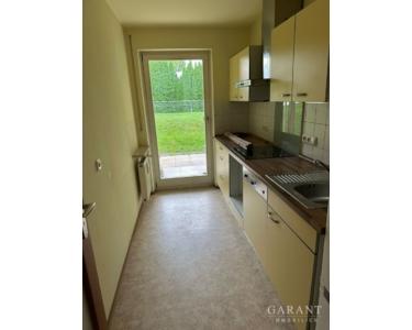 Zur Wohnung gehört eine kleine Einbauküche, ein Tiefgaragen-Stellplatz sowie ein großzügiger Kellerbereich. Die Terrassenwohnung ist leerstehend und kann kurzfristig bezogen werden.