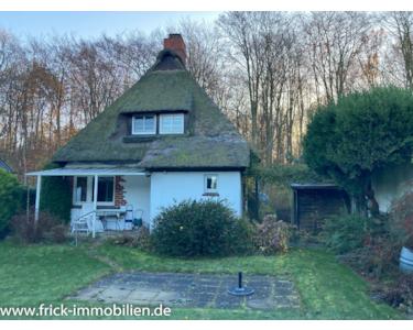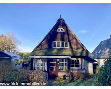 Das hier von uns im Rahmen eines qualifizierten Makler-Alleinauftrages angebotene Grundstück ist mit einem Reetdachhaus (Baujahr 1937) und einer Fertiggarage (Baujahr 1981) bebaut. Das Haus wurde in konventioneller, massiver Bauweise erstellt und ist nicht unterkellert. Es ist, mit Ausnahme des Duschbades-WC, in vollem Umfang modernisierungsbedürftig.