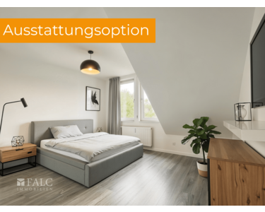 Schon beim Betreten spüren Sie die Harmonie des Grundrisses: Von der Diele aus öffnet sich das lichtdurchflutete, offen gestaltete Wohn- und Esszimmer mit bodentiefen Fenstern. Die markanten Holzschrägen schenken dem Raum zusätzlich eine warme, behagliche Atmosphäre und verleihen ihm einen ganz besonderen Charme. Viel Platz für erholsame Nächte und individuelle Einrichtungsideen bietet Ihnen das großzügige Schlafzimmer. Ergänzt wird es durch ein weiteres Zimmer, das sich flexibel als Kinderzimmer, Homeoffice oder Gästezimmer nutzen lässt – hier gestalten Sie Ihre Wohnträume ganz nach Ihren Vorstellungen. Ein besonderes Highlight ist das helle Tageslichtbad mit Badewanne und separater Dusche, sodass Sie ganz nach Bedarf zwischen entspannendem Wannenbad und erfrischender Dusche wählen können.