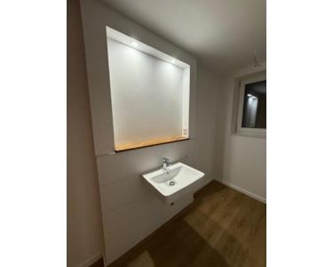 Die gesamte Wohnung ist mit hochwertigem Design Venylboden ausgestattet. Im Bad und Gäste-WC sind an den Wänden moderne Fliesen verlegt.