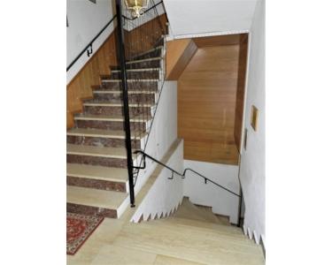 - 3 Treppenhäuser, kein Aufzug (auch baulich schwer zu integrieren, und wenn doch, dann nur für einen Teil der Zimmer ohne Stufen erreichbar), Treppenlifter zum 1. OG von der Ebene der Rezeption aus vorhanden