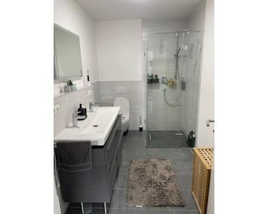 Fußbodenheizung, zentrale Luft-Wärmepumpe, kontrollierte Wohnraumlüftung mit Wärmerückgewinniung durch dezentrale in den Wohnungen installierte Luft-Wärmepumpe zur parallelen Warmwassererwärmung, moderne Einbauküchen in Hochglanz weiß, ebenerdige Duschen, Fußbodenheizung in EG-Bereich zu Abstellräumen, Stellplätze teilweise überdacht, jeder Stellplatz pro Wohnung erhält eine Wallbox zur möglichen Aufladung Ihres E-/Hybrid-Fahrzeuges, moderne Betonfliesenoptik in Format 30x60, in Penthäusern kombiniert mit Eiche-Parkett in Schlafzimmern, durchgehend Unterputz Armaturen, 3-fach Fensterverglasung der Firma WERU (innen weiß, außen anthrazit), elektrische Rolladensysteme, elektrische Bad-/Handtuchheizkörper, spülrandlose WCs mit Softclose System, Waschmaschinen- und Trockneranschlüsse in jeweiligen Hauswirtschafts-Technikräumen jeder Wohnung, Fliesenspiegel in Bädern 1,20m hoch außer Dusche (deckenhoch) mit modernen weißen Fliesen (30x60) ausgestattet, alle Innentüren in Röhrenspankerntüren in CPL Ausführung weiß, Ganzglasduschabtrennungen, Masterbäder mit Doppelwaschtischen, alle Wohnungen in weiß 2x gestrichen. Alle Räume sind mit modernen LED Leuchten bzw. Up-/Downlights (Balkone) ausgestattet. Die Bäder mit Doppelwaschtisch (130mm Breite) erhalten einen 120 cm breiten Spiegel mit integriertem Schminkspiegel. Alle anderen Bäder bzw. Gäste Bad erhalten einen 70cm breiten Spiegel.
