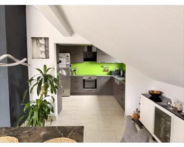 Diese modern ausgestattete und großzügig geschnittene Wohnung bietet auf rund 83 m² ein angenehmes Wohngefühl mit hellen Räumen und hohen Decken. Sie befindet sich im 2. Obergeschoss und bildet zugleich die Dachgeschosswohnung eines Mehrfamilienhauses aus dem Jahr 1965. Die Wohnung ist gepflegt, wurde 2008 komplett renoviert und seither kontinuierlich weiter verbessert.