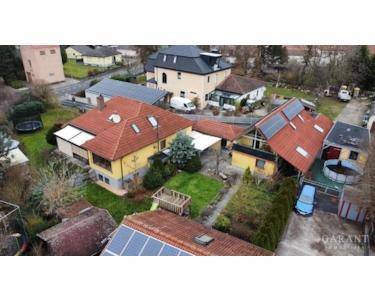 Das Haupthaus stellt der hochwertige Bungalow dar, der 1966 erbaut wurde und sich in zwei Wohnungen aufteilt. Die Hauptwohnung bietet 150 qm Wohnfläche auf zwei Ebenen verteilt und wurde im Erdgeschoss bereits umfassend saniert. Das Herzstück bildet hier der offene Wohn- & Essbereich mit hochwertiger Einbauküche und direktem Zugang zum lichtdurchfluteten Wintergarten. Das Dachgeschoss eignet sich mit zwei Schlafzimmern & kleinen Badezimmer ideal als separaten Bereich für die Kinder. Das Kellergeschoss verfügt über ca. 70 qm Nutzfläche. Zusätzlich befindet sich im Untergeschoss eine etwa 54 qm große Einliegerwohnung mit offener Wohnküche, Schlafzimmer & Badezimmer.