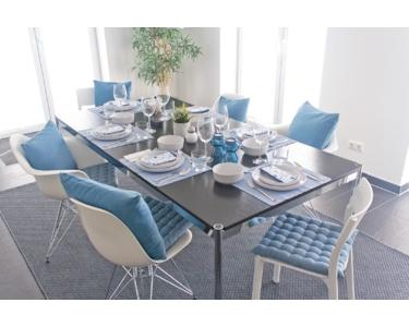 Die großzügige Terrasse, die individuell in Bögen gestaltet ist und über eine Süd- sowie West-Ausrichtung verfügt, bietet von morgens bis abends Sonneneinstrahlung.
