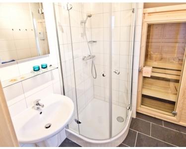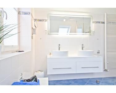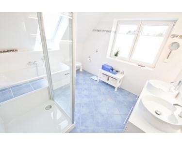 - 1 Vollbad mit Dusche, Wanne, WC, Doppelwaschbecken