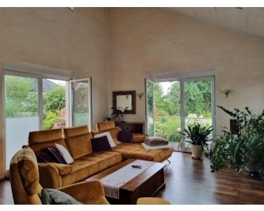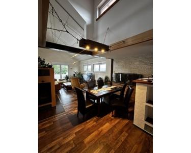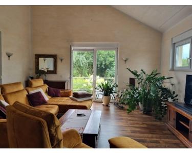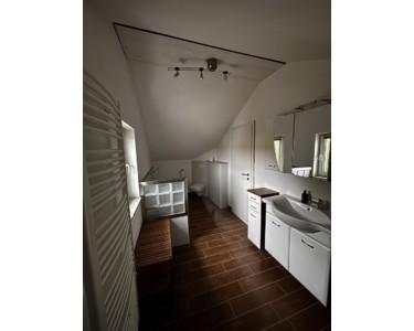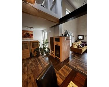 Alle Fenster im Haus sind mit Dreifachverglasung ausgestattet. Im Erdgeschoss haben alle Fenster Außen-Jalousien. Weiterhin sind alle Räume im Erdgeschoss - ausgenommen Gäste-WC und Vorratskammer - mit einer Fußbodenheizung ausgestattet. Die restlichen Räume werden mit Wandheizkörpern beheizt. Als Wärmeerzeuger dient eine Luft-Wärmepumpe der Fa. MHG mit 11 kW Leistung und zusätzlich ein gemauerter, wasserführender Grundofen. Dieser kann mit Holzscheiten bis 45 cm Länge beheizt werden und ist zusätzlich mit einem nachgeschalteten Kaminzug ausgestattet. Der Ofen verfügt über eine elektronische Abbrandautomatik und einer automatischen Steuerung. Die Gesamtleistung des Ofens beträgt 18 kW, wobei 9 kW direkt in die Umgebung und 9 kW über die Wassertasche in den im Keller befindlichen 1.000 Liter Pufferspeicher abgegeben werden. Zusätzlich im Keller ist ein Trinkwasserspeicher mit 240 Litern verbaut. Im Haus ist die Warmwasserverteilung über eine Ringleitung gelöst. Dies bedeutet, dass man an allen Mischbatterien des Hauses innerhalb weniger Sekunden heißes Wasser zur Verfügung hat. Alle Stromleitungen und die Leitungen des hauseigenen LAN-Netzwerks sind ausnahmslos in Leerrohren bzw. Kabelkanälen verlegt. Dadurch sind eine spätere Änderung und die Verlegung weiterer Leitungen einfach und unkompliziert. Das Netzwerk könnte auch zur Steuerung der Haustechnik verwendet werden. Die nachträgliche Installation einer PV-Anlage oder Solar-Thermie auf dem Dach wäre durch die Nutzung der vorhandenen Kanäle sehr einfach.