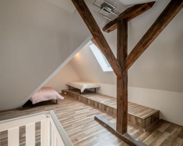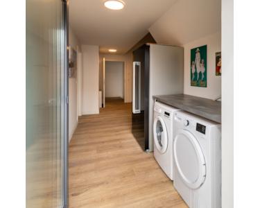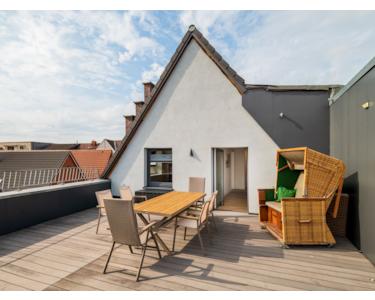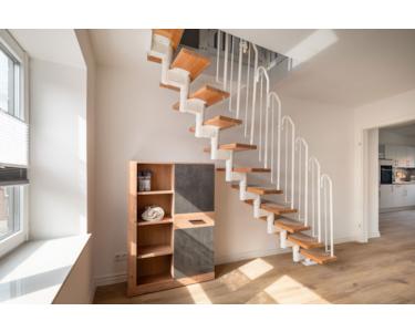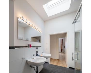 Das um 1930 erbaute Haus, in dem sich diese Eigentumswohnung befindet, wurde 2023 vom jetzigen Eigentümer aufwändig und hochwertig kernsaniert. Die komplett ausgestattete Wohnung (das gesamte Mobiliar, die Küche mit allen Geräten sowie Waschmaschine und Trockner sind im Kaufpreis enthalten!) befindet sich im Dachgeschoss und ist mit einem Personenaufzug erreichbar, sie erstreckt sich über 2 Etagen ( DG + Spitzboden). Der geräumige Koch-Essbereich bildet das Herz der Wohnung, von hier aus führen Türen zum Balkon, zur großen Dachterrasse sowie zum Bad (Dusche, Doppelwaschtisch, WC) und 2 weiteren großen Räumen (Schlafen, Wohnen, Arbeiten...). Die Wohn-/Nutzfläche beträgt rund 109 m² (inkl. der Fläche im Spitzboden). Über eine Treppe in einem der Räume geht es in den ausgebauten Spitzboden, das mit über 21 m² Nutzfläche viele Verwendungsmöglichkeiten bietet. In allen Räumen gibt es Fußbodenheizung, die von einer zentralen Luft-Wasser Wärmepumpe versorgt wird.