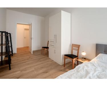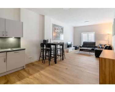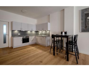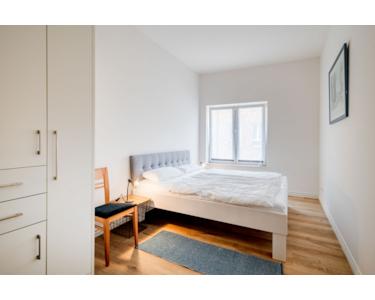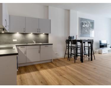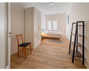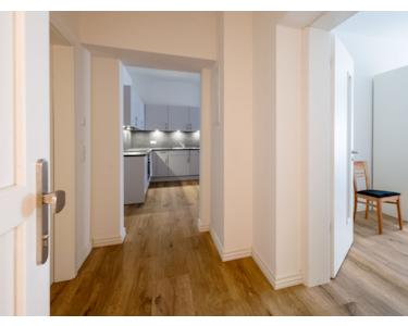 Das um 1930 erbaute Haus, in dem sich diese Eigentumswohnung befindet, wurde 2023 vom jetzigen Eigentümer aufwändig und hochwertig kernsaniert (Personenaufzug vorhanden). Die komplett ausgestattete 2-Zimmer-Wohnung (das gesamte Mobiliar, die Küche mit allen Geräten sowie die Waschmaschine sind im Kaufpreis enthalten!) befindet sich im Erdgeschoss. Der Flur und der Wohn-Essbereich bilden eine Einheit, vom Flur führen Türen in das Schlafzimmer und einen kleinen Abstellraum. Das geräumige Bad mit Dusche, Waschtisch und WC ist vom Wohn-Essbereich erreichbar. Die Wohnfläche beträgt rund 68 m². In allen Räumen gibt es Fußbodenheizung, die von einer zentralen Luft-Wasser Wärmepumpe versorgt wird. Außerdem verfügt die Wohnung über einen Kellerraum. Ein besonderes Highlight: Über einen Personenaufzug im Treppenhaus ist die Gemeinschaftsterrasse des Hauses erreichbar, hier lässt es sich dank Südausrichtung herrlich genießen und entspannen.