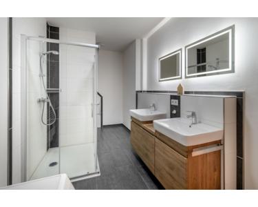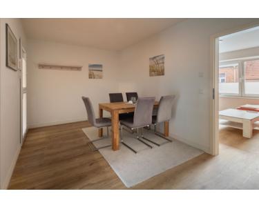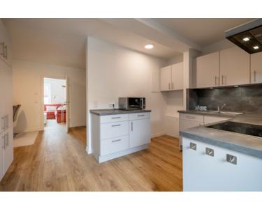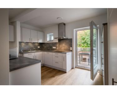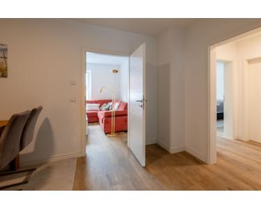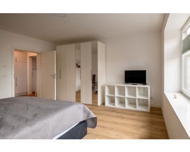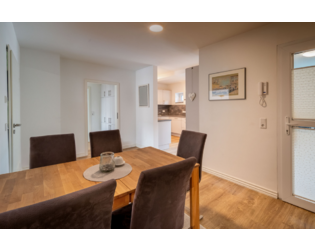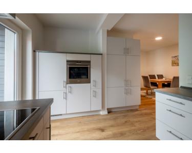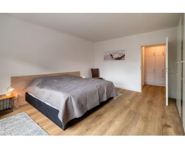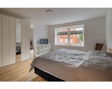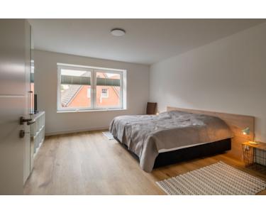 Das um 1930 erbaute Haus, in dem sich diese Eigentumswohnung befindet, wurde 2023 vom jetzigen Eigentümer aufwändig und hochwertig kernsaniert. Die komplett ausgestattete 2-Zimmer-Wohnung (das gesamte Mobiliar, die Küche mit allen Geräten sowie Waschmaschine und Trockner sind im Kaufpreis enthalten!) befindet sich im Obergeschoss und ist mit einem Personenaufzug erreichbar. Der geräumige Flur und die Küche bilden eine Einheit, von der Küche führt eine Türe auf den Balkon mit Blick auf den Husumer Schlossgarten. Über den Flur sind das große Bad (Doppelwaschtisch, Dusche + WC inkl. Waschmaschine), das Schlafzimmer sowie der Wohn-Essbereich erreichbar. Die Wohnfläche beträgt ca. 81 m². In allen Räumen gibt es Fußbodenheizung, die von einer zentralen Luft-Wasser Wärmepumpe versorgt wird. Außerdem verfügt die Wohnung über einen Keller. Ein besonderes Highlight: Über einen Personenaufzug im Treppenhaus ist die Gemeinschaftsterrasse des Hauses erreichbar, hier lässt es sich dank Südausrichtung herrlich genießen und entspannen.