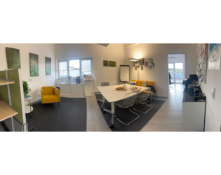 Sie übernehmen ein helles und modern ausgestattetes Büro mit mehreren Arbeitsräumen sowie kleiner Empfangszone. Eine große Dachterrasse rundet das Angebot ab – ideal für Pausen oder Besprechungen an der frischen Luft. (Fotos)