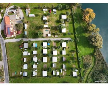 Auf ebenen, gepflegten Wiesen mit lockerem Baumbestand stehen ca. 50 parzellierte Stellplätze für Zelte, Wohnwagen und Reisemobile zur Verfügung.