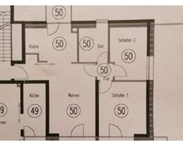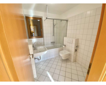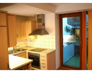 Vom Wohnzimmer sowie vom Schlafzimmer gelangen Sie auf den großen Balkon. Die Küche kann durch eine Schiebetür vom Wohnzimmer abgetrennt werden. Neben einem Schlafzimmer gibt es ein Kinderzimmer/Büro. Aufgrund der Raumaufteilung werden 1-2 Personen sowie zuzüglich maximal 1 Kind bevorzugt.