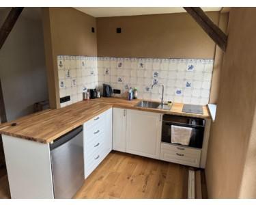 •Handgemalter Fliesenspiegel in Küche, Neue EBK mit Backofen, Induktionsfeld und Kühlschrank