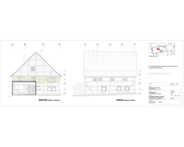 •Aktueller Zustand: stromlos (Hauptanschluss in Scheune verlegt), stark sanierungsbedürftig, aber mit vollständiger Entwurfsplanung und bereits genehmigtem denkmalrechtlichem Konzept