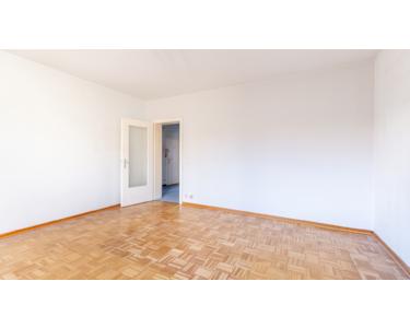 Der helle und geräumige Wohnbereich, der über einen attraktiven Echtholzparkettfussboden verfügt, bietet Ihnen Zutritt auf den sonnigen Süd/West-Balkon. Dieser lädt zu erholsamen und gemütlichen Stunden mit Blick ins Grüne ein.