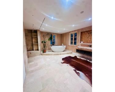 • hochwertige Ausstattung: Kieferndielen, Naturstein, luxuriöse Bäder mit freistehender Wanne & Walk-in-Duschen