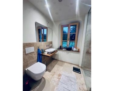 o Natursteinböden in Bad & HWR, beheizbare Spiegel, TV-Anschluss im Bad