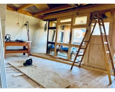 aktuell über das Haus zugänglich, kann perspektivisch aber auch über separaten Außenzugang nutzbar gemacht werden (als Einliegerwohnung geeignet); Schlafzimmer, Ankleidezimmer (auch als Arbeitsbereich nutzbar), eigener Wohnbereich mit Küchenvorbereitung, Bad im Rohbau, Veranda mit Starkstromanschluss (z. B. für Grill oder Außenküche)