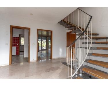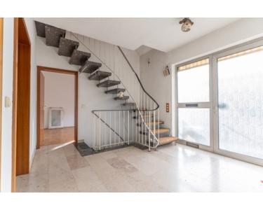 Geschosstreppen: Zum KG massiv mit Steinbelag, zum DG Stahlkonstruktion mit Steinstufen, Metallgeländer und PVC- Handlauf