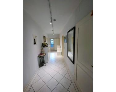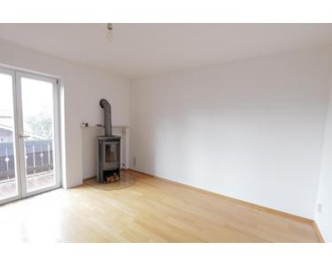 Im Erdgeschoss befindet sich eine 108 qm große Wohnung mit 4 Zimmern, 2 Bädern und einem Kaminofen im großen Wohnraum. Von hier hat man auch diverse Zugänge zu der umlaufenden Terrasse und dem großen eingewachsenem Garten mit altem Baumbestand.