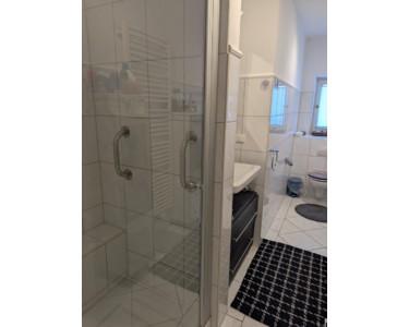 Im 1. OG befinden sich 2 Wohnungen. Die größere Wohneinheit mit 3 Zimmern und 89 qm Wohnfläche bietet zusätzlich einen 24 qm großen überdachten Balkon mit Südausrichtung und Bergblick. In dem großen Wohnzimmer befindet sich der schöne Kaminofen. Die kleine Wohneinheit hat 28 qm Wohnfläche und besteht aus einem großen Wohnraum, Badezimmer und Küche im Flur. Auch dieses Apartment verfügt über einen über 8 qm großen überdachten Balkon in Westausrichtung und schönem Blick zum Wendelstein.