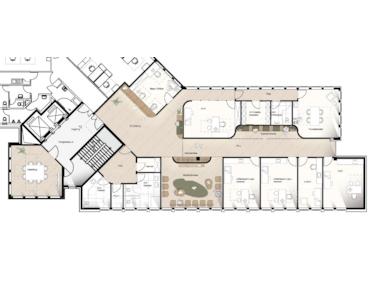 Die Flächen werden individuell nach Bedarf unterteilt und ausgestattet. Daher sind neben klassischen Behandlungsräumen, Arztzimmern und Wartebereichen auch große Räume für Sportangebote im Bereich Physiotherapie, eigene Labore oder Räumlichkeiten für diagnostische Zwecke realisierbar.