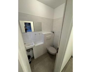 Das Ladenlokal wird frisch renoviert und ist mit einem Fliesenboden und Fußbodenheizung ausgestattet. Die Räumlichkeiten verfügen über ein WC und einen kleinen abgetrennten Raum für eine Küchenzeile.