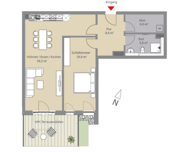 Die Wohnung verfügt über einen großzügigen Wohnbereich mit offener Einbauküche, einem Badezimmer mit Dusche und einem Schlafzimmer. Ein Abstellraum befinde sich in der Wohnung.