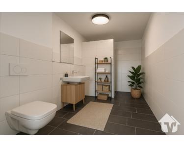 Die Wohnung verfügt zudem über ein großzügiges Schlafzimmer, ein modernes Badezimmer sowie einen geräumigen Hauswirtschaftsraum mit ausreichend Platz für eine Waschmaschine und Abstellmöglichkeiten.